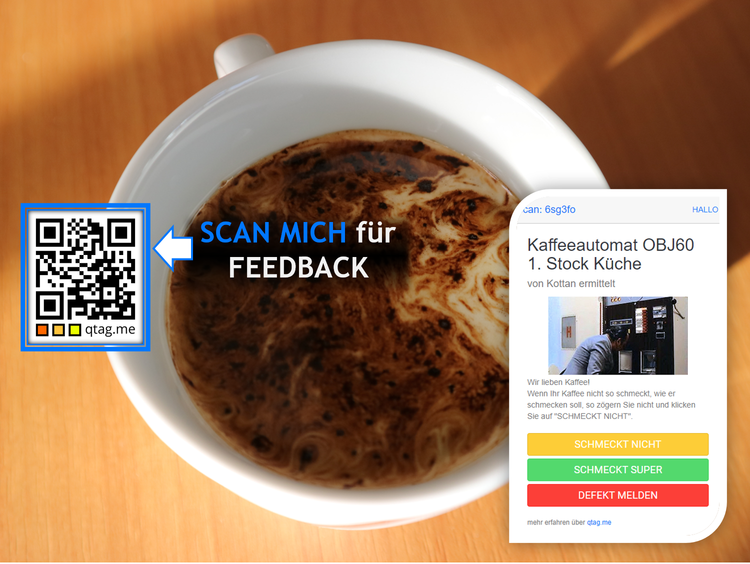 Mit 1 Klick- FEEDBACK geben (Kaffee schmeckt nicht, …)