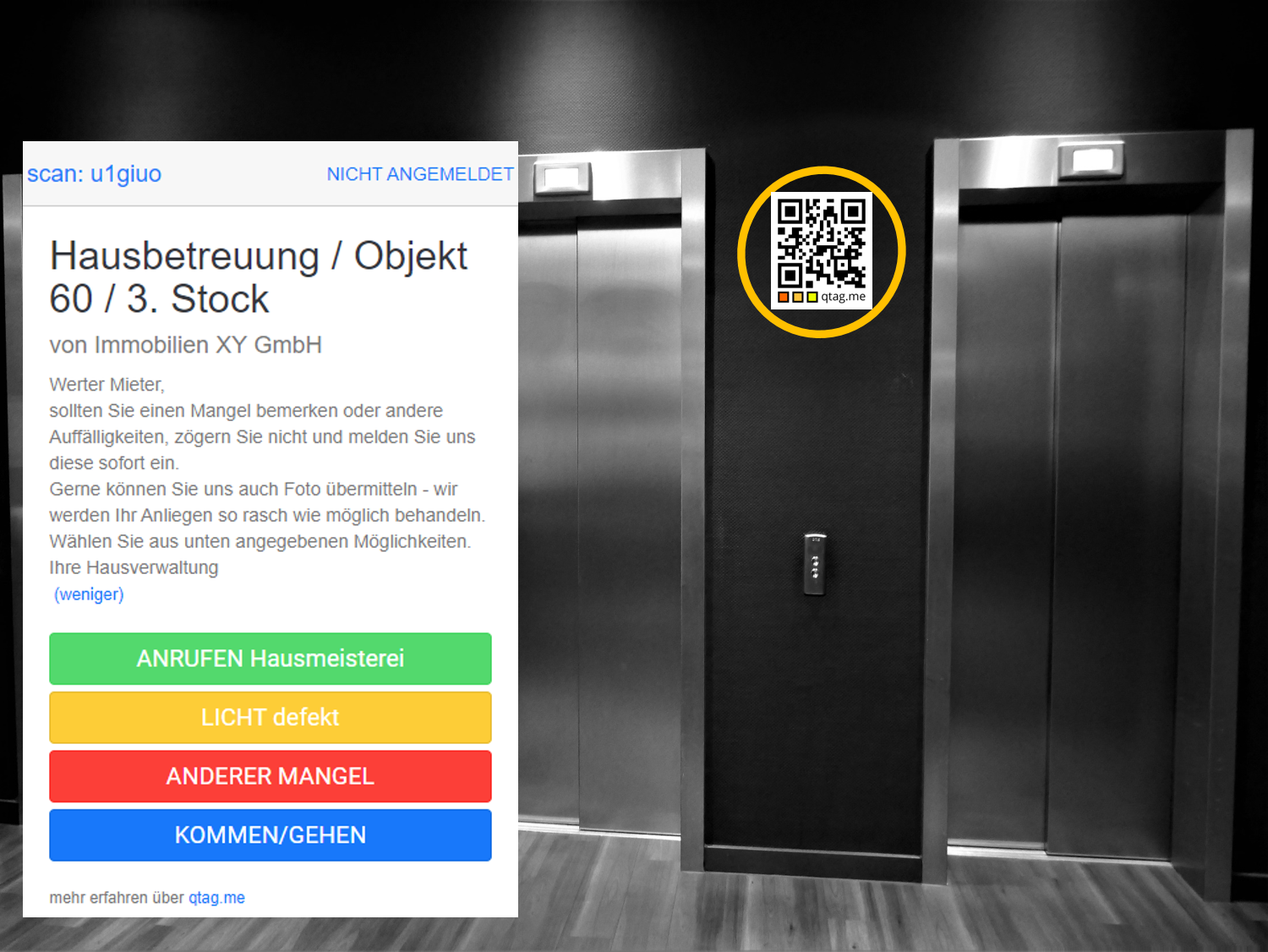 Als Mieter/Bewohner qtag.me QR-Code scannen