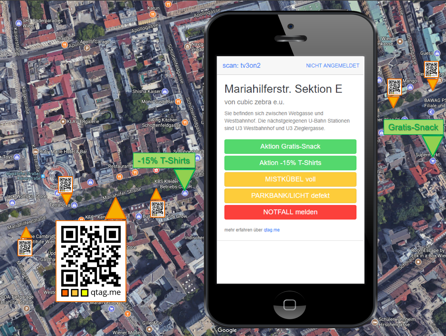 Im qtag.me QR-Code ist der Ort implizit festgelegt.