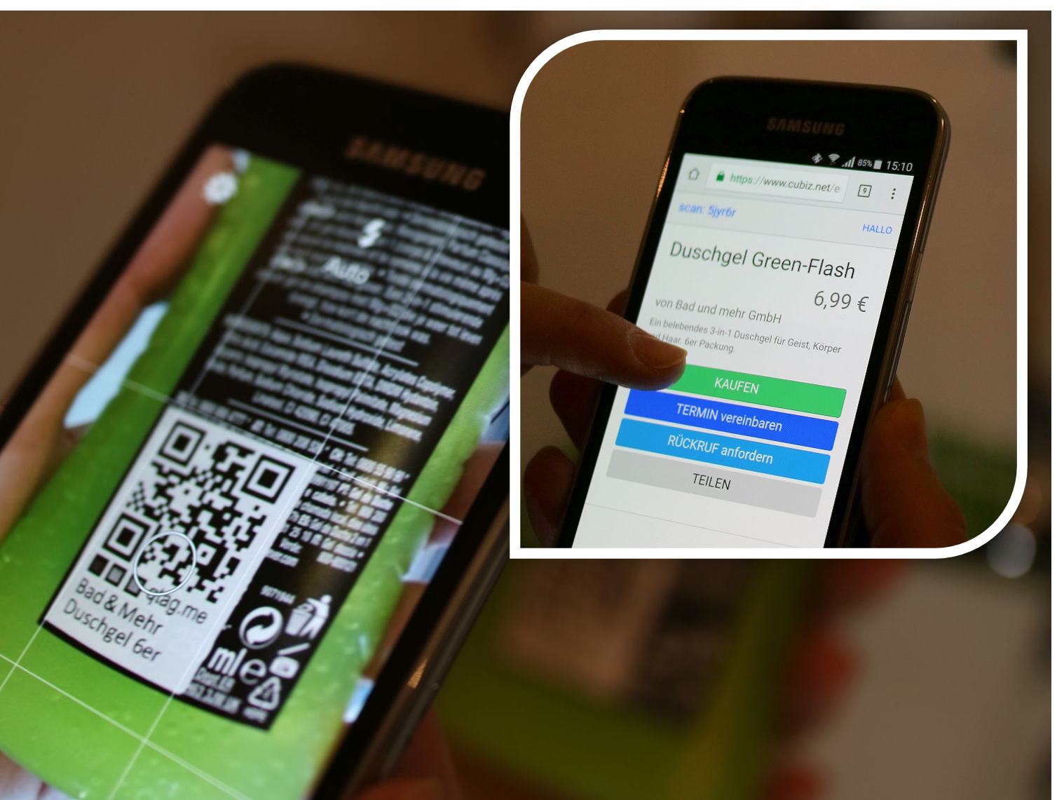 Kleben Sie einen qtag.me QR-Code auf Ihr Produkt und schon ist Ihr Kunde auf Knopfdruck mit Ihnen verbunden.